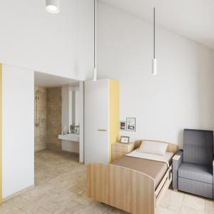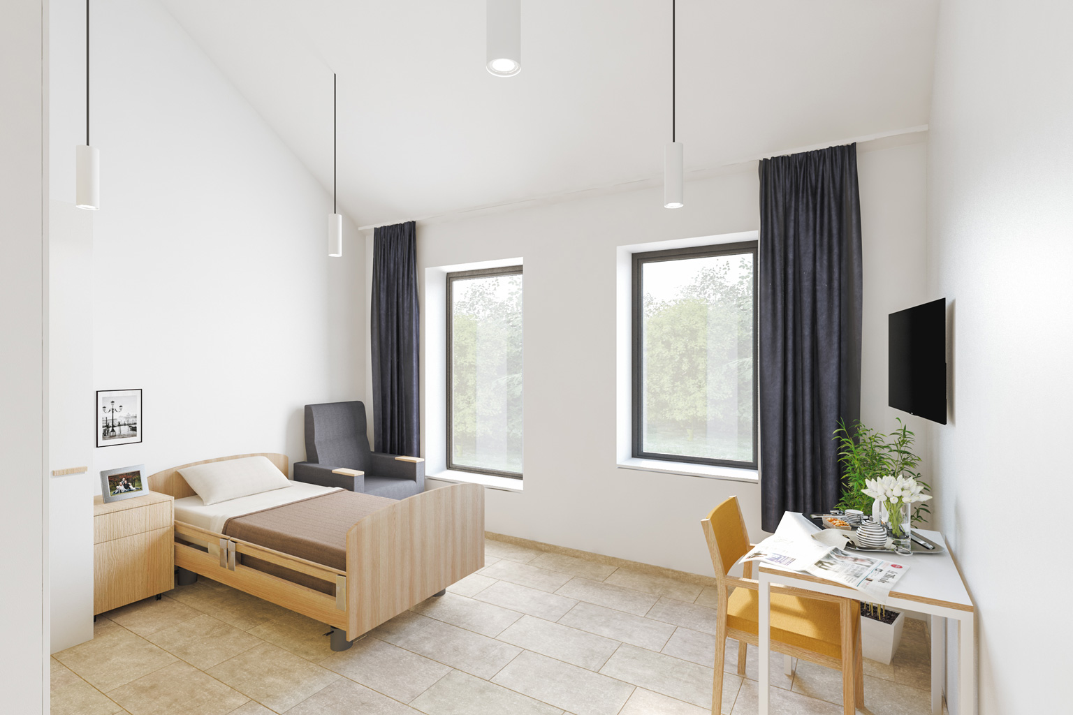 Onze kamers zijn goed uitgerust en voorzien van de nodige faciliteiten voor een goede zorgondersteuning en nachtrust. Zo voorzien we aangepaste bedden van het Duitse merk Stiegelmeyer, de enige echte Tempur-Med anti-decubitus zorgmatrassen, Axio iTec meldingsknoppen van Televic met Duplex Interfonie en inclusief Akoestische Oproep voor valdetectie, Proximus TV, de nodige inbouwkasten, een comfortabele fauteuil en een tafel met stoel.